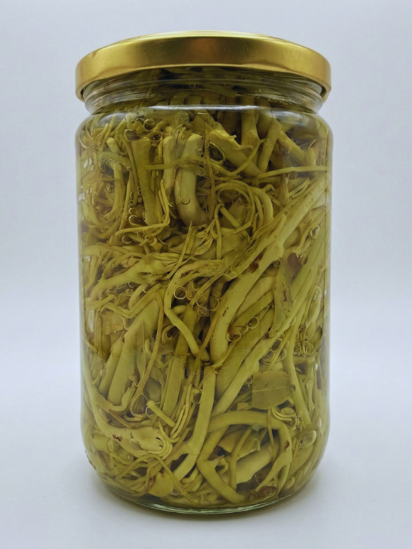 Bitki mevsiminde toplanır, temizlenir, haşlanır ve cam kavanozlarda geleneksel yöntemlerle konservelenir. |